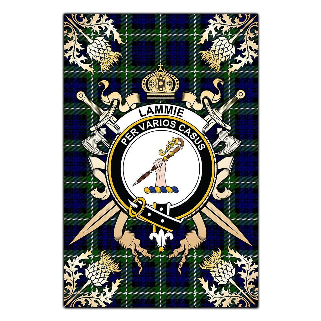 Lammie Tartan Crest Black Garden Flag - Gold Thistle Style