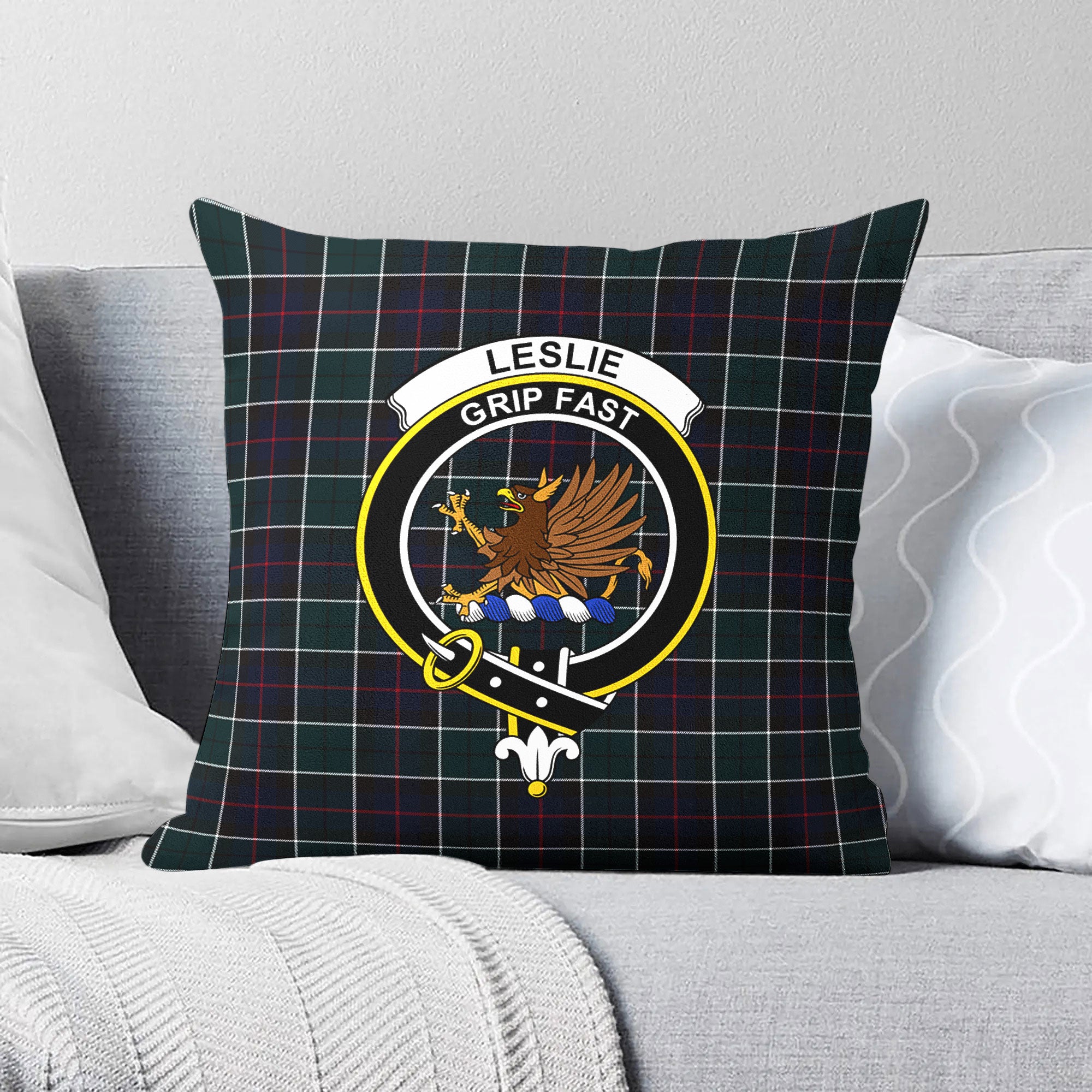 Leslie Hunting Modern Tartan Crest Pillow Cover