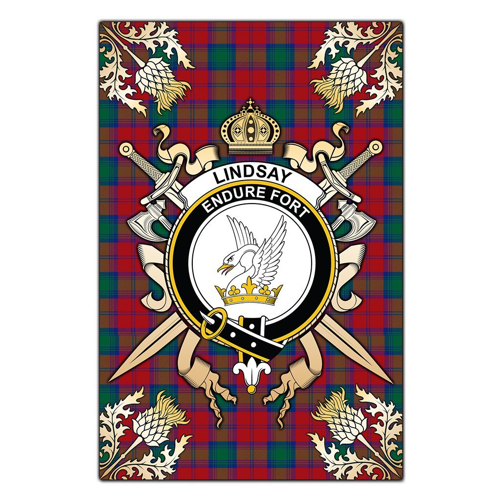 Lindsay Modern Tartan Crest Black Garden Flag - Gold Thistle Style