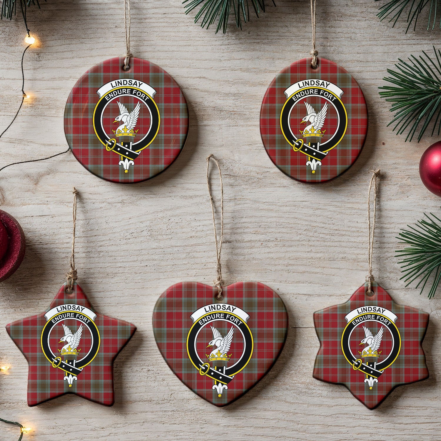 Lindsay Weathered Tartan Crest Christmas Ceramic Ornament