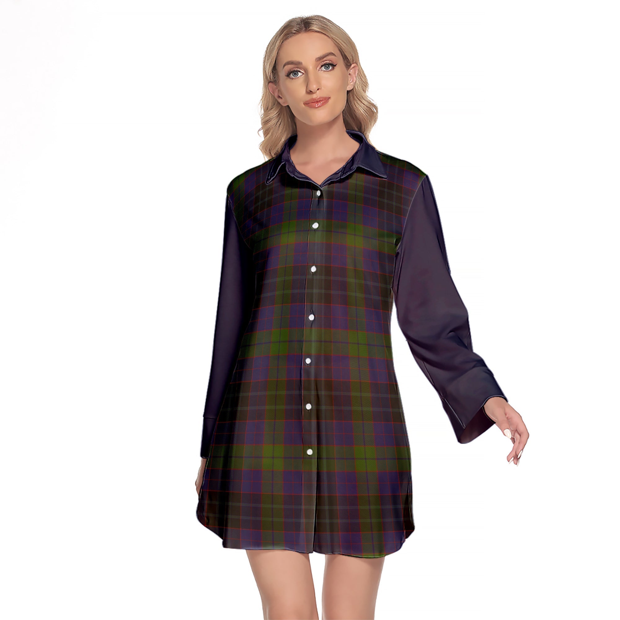 Lumsden Hunting Tartan Women's Lapel Shirt Dress With Long Sleeve