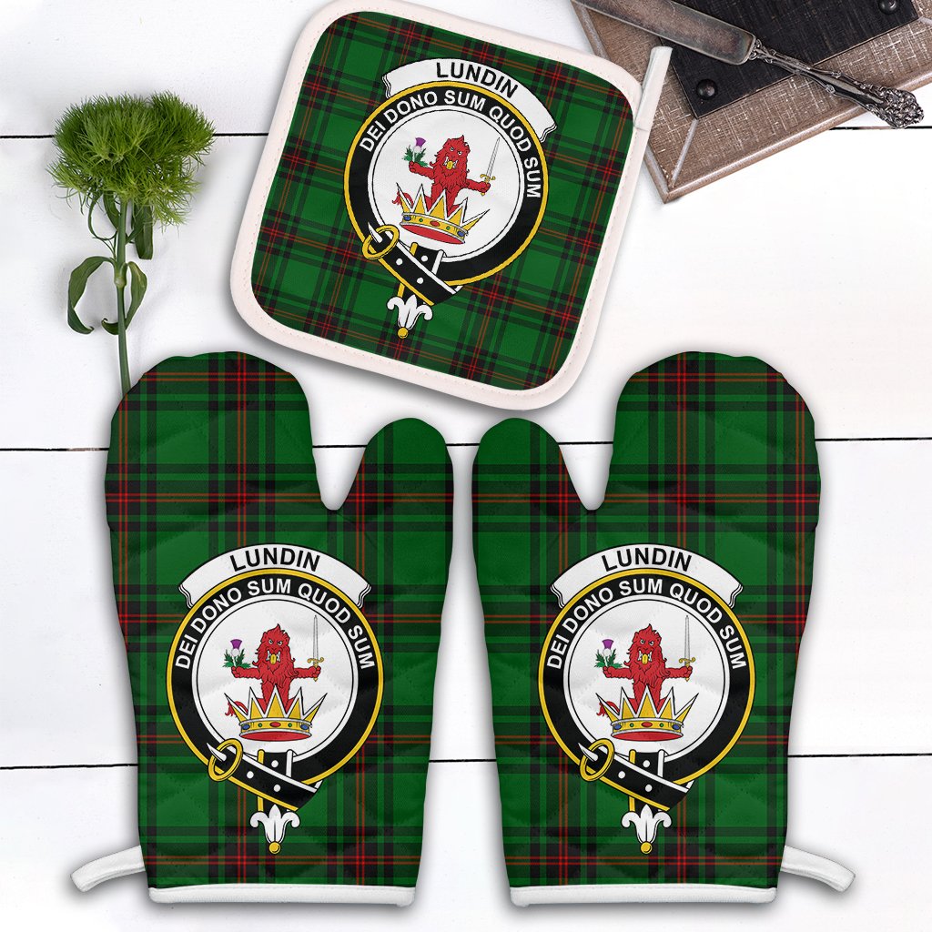 Lundin Tartan Crest Oven Mitt And Pot Holder (2 Oven Mitts + 1 Pot Holder)