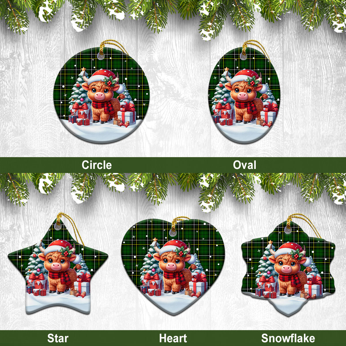 MacAlpine Modern Tartan Christmas Ceramic Ornament - Highland Cow Winter Style