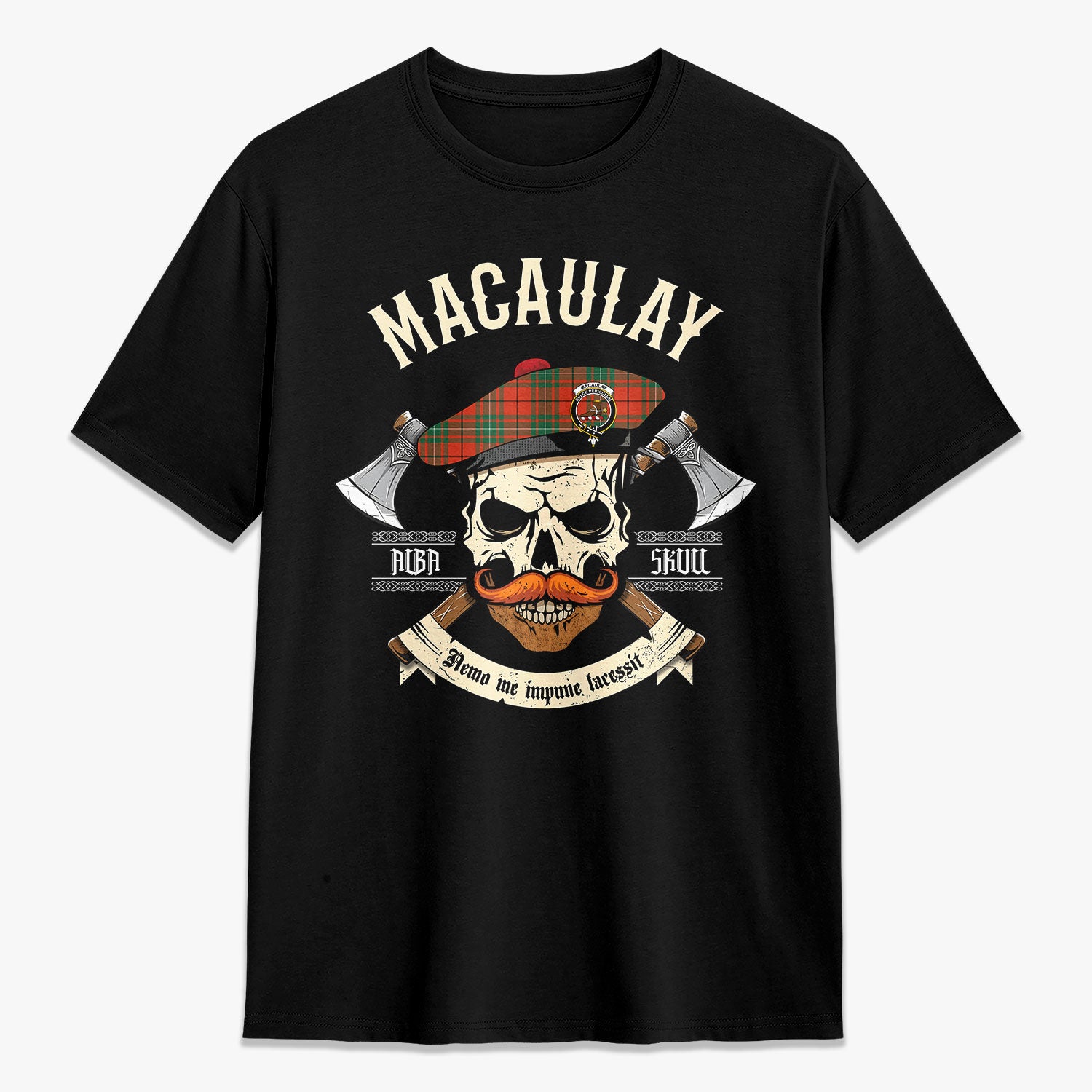 MacAulay Ancient Tartan Crest 2D T-shirt - Alba Skull Style,