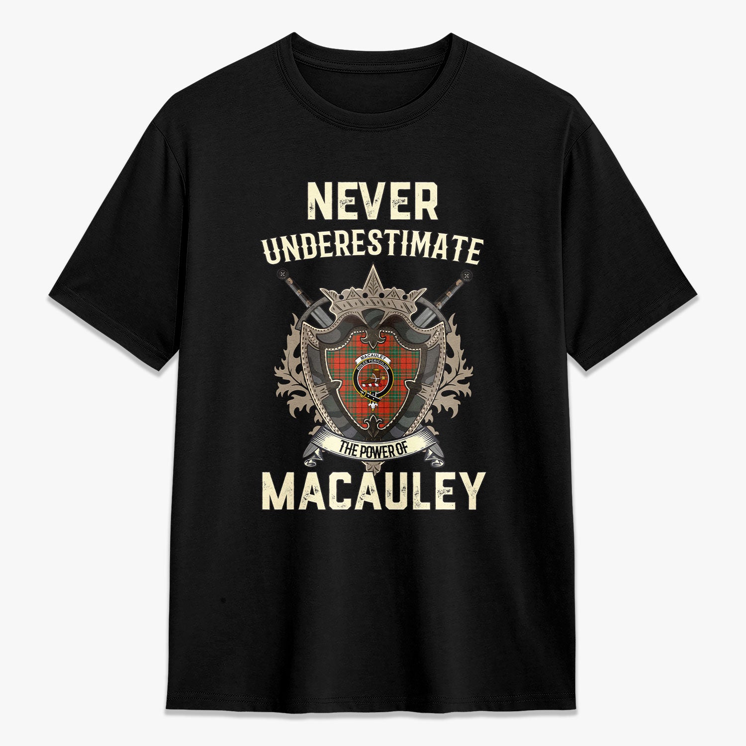 MacAuley Ancient Tartan Crest 2D T-shirt - Never Underestimate Style