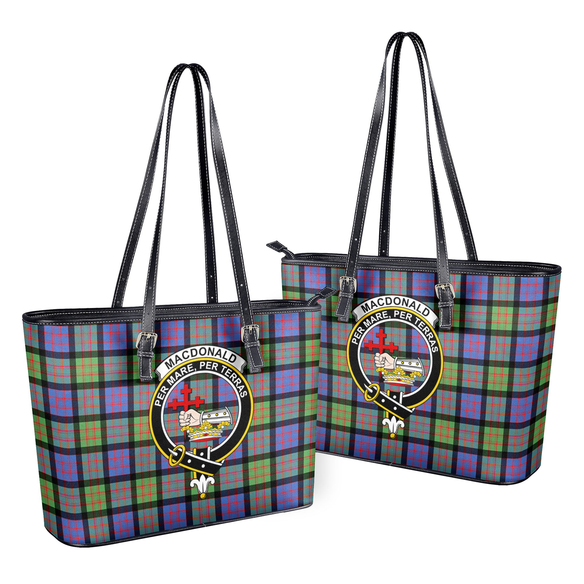 MacDonald Ancient Tartan Crest Leather Tote Bag