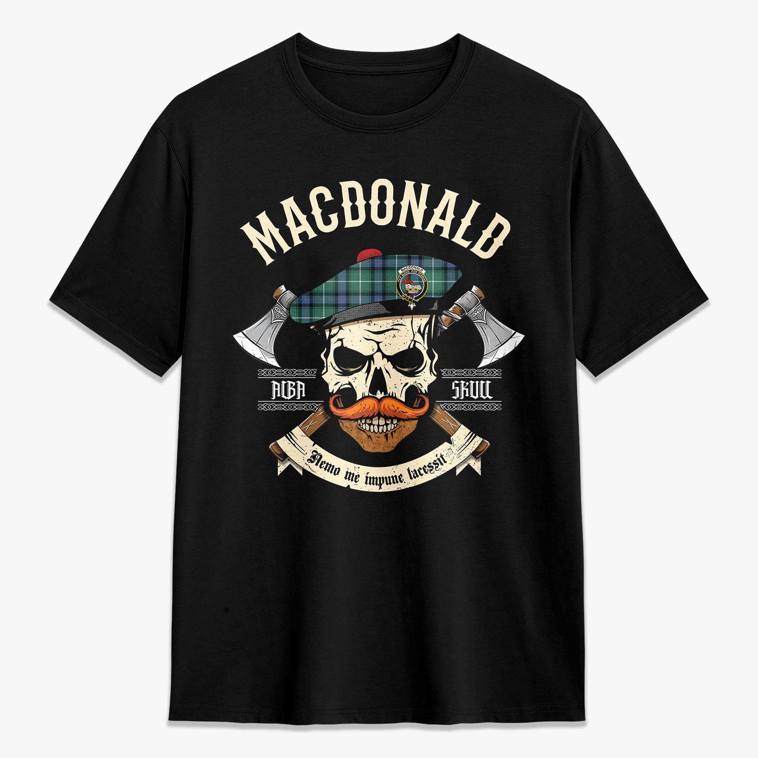 MacDonald of the Isles Hunting Ancient Tartan Crest 2D T-shirt - Alba Skull Style,
