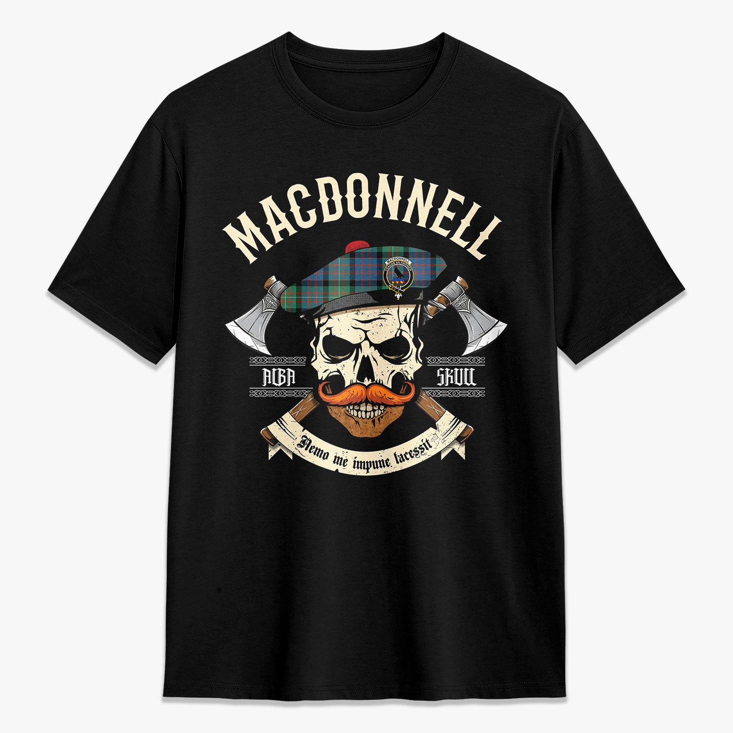 MacDonnell of Glengarry Ancient Tartan Crest 2D T-shirt - Alba Skull Style,