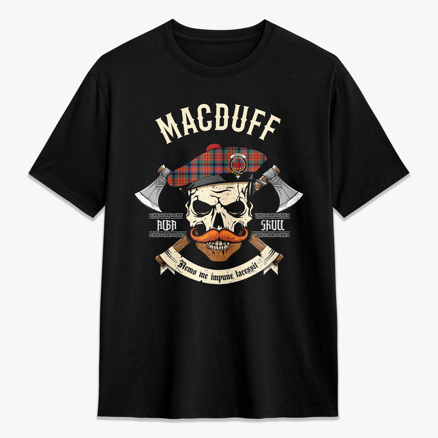 MacDuff Ancient Tartan Crest 2D T-shirt - Alba Skull Style,