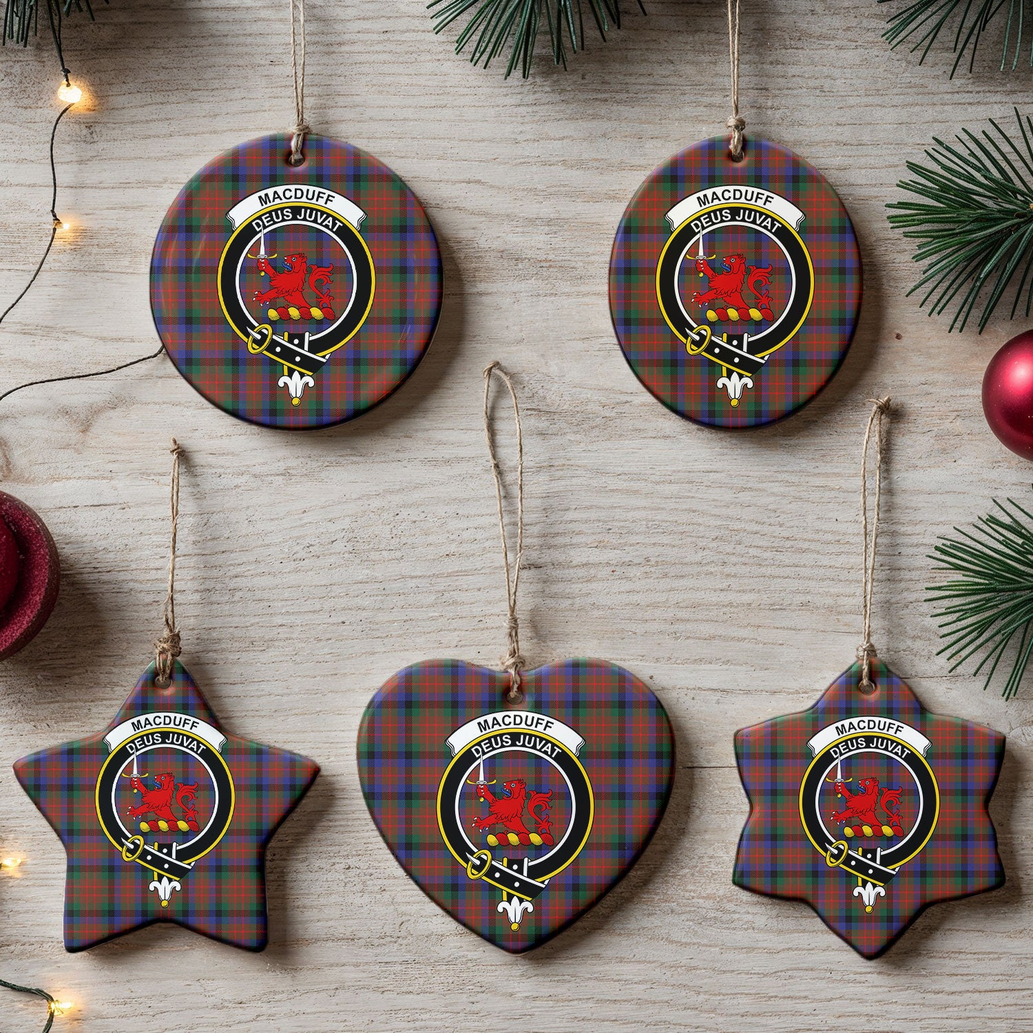 MacDuff Hunting Modern Tartan Crest Christmas Ceramic Ornament