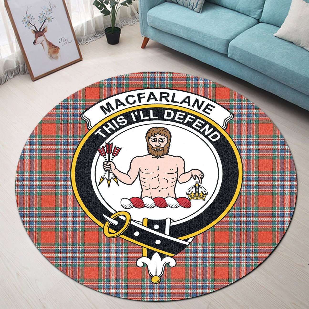 MacFarlane Ancient Tartan Crest Round Rug