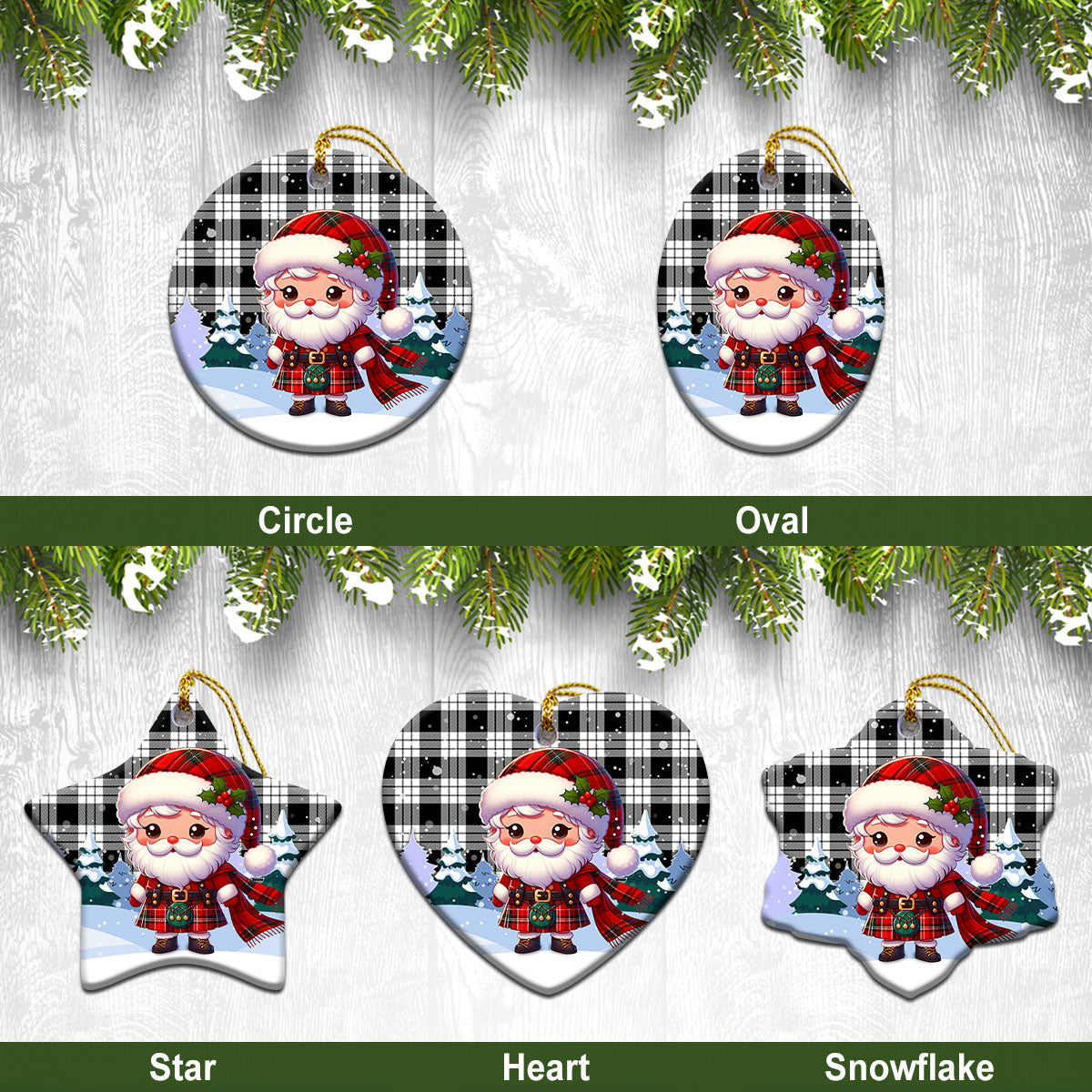 MacFarlane Black - White Tartan Christmas Ceramic Ornament - Santa Claus In Kilt Style