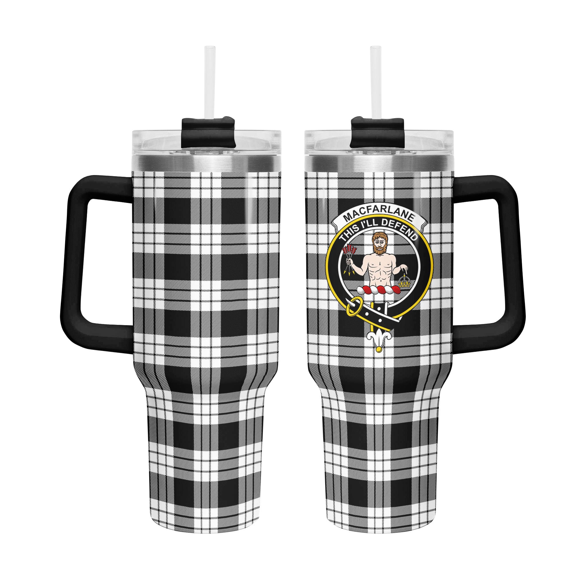 Stay refreshed all day with this 40 oz insulated tumbler featuring the MacFarlane Black - White Tartan. Whether you’re heading to work, running errands, or relaxing at home, this tumbler is built for daily use and long-lasting performance.