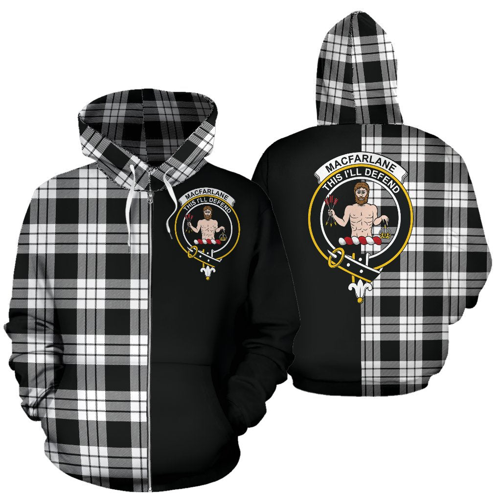 MacFarlane Black & White Tartan Crest Zipper Hoodie - Half Of Me Style