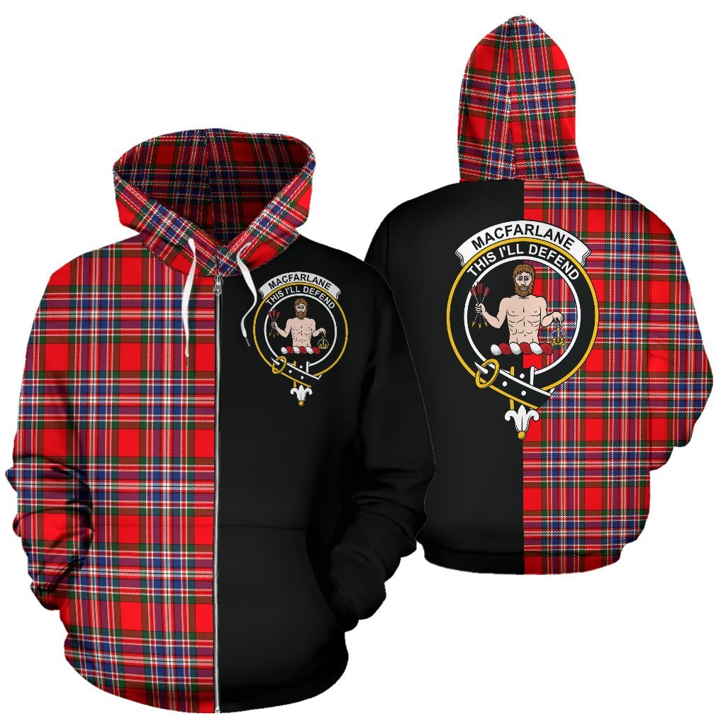 MacFarlane Modern Tartan Crest Zipper Hoodie - Half Of Me Style