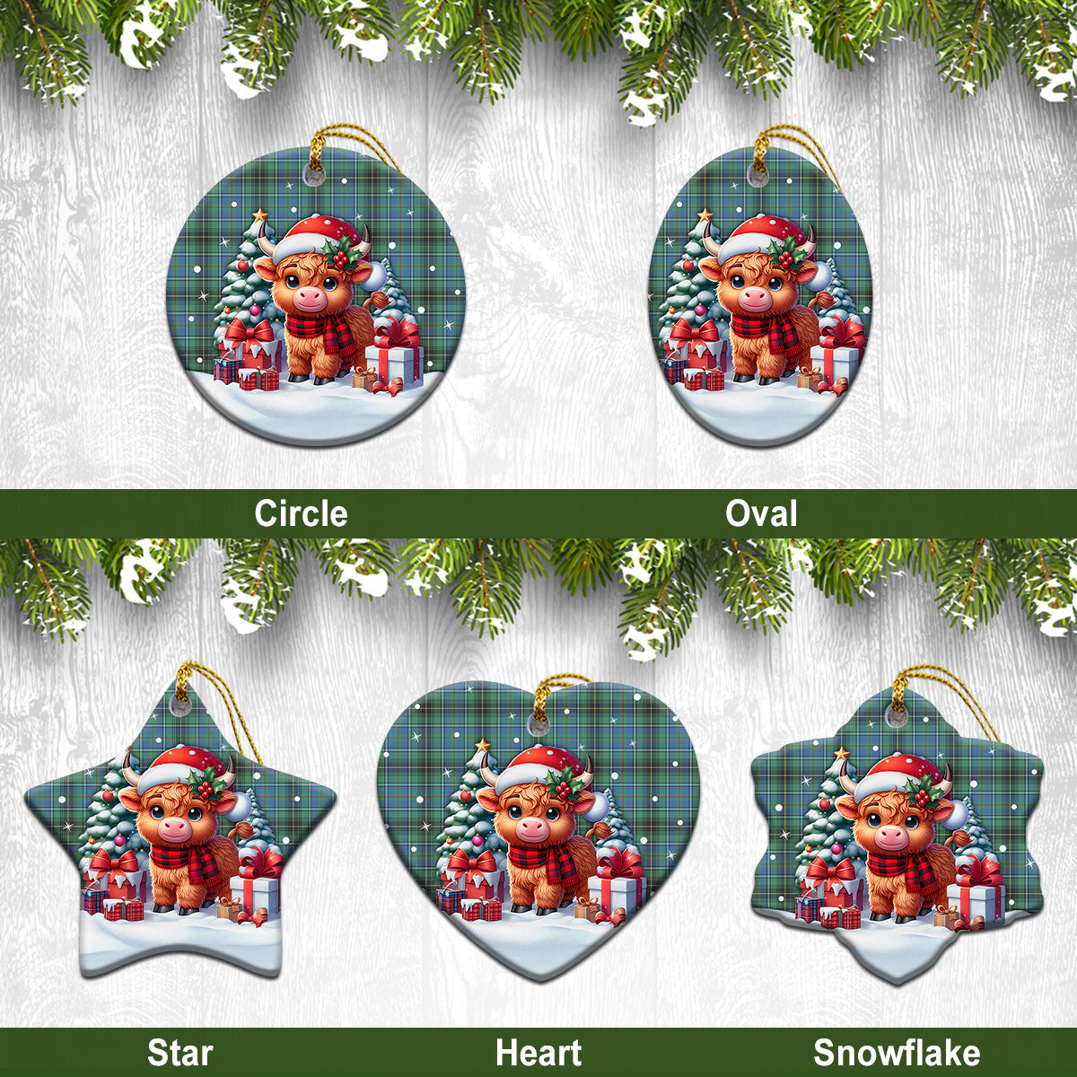 MacInnes Ancient Tartan Christmas Ceramic Ornament - Highland Cow Winter Style