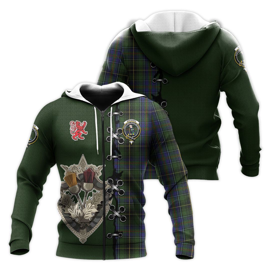 MacInnes Tartan Hoodie - Lion Rampant And Celtic Thistle Style