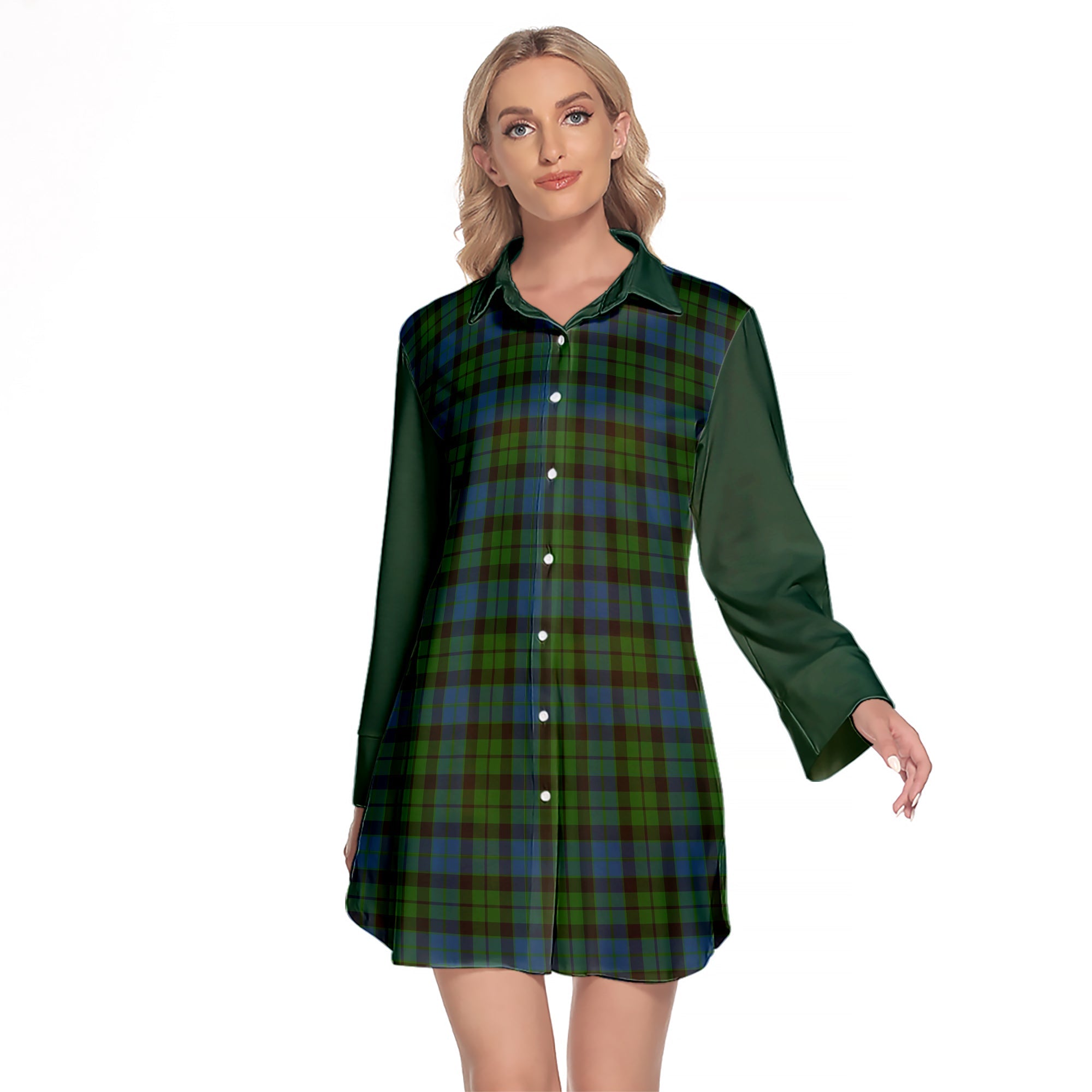 MacKay Modern Tartan Women's Lapel Shirt Dress With Long Sleeve
