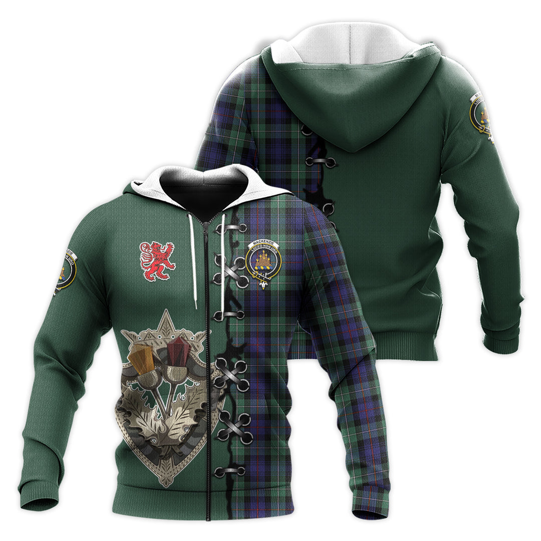 MacKenzie Hunting Green Tartan Hoodie - Lion Rampant And Celtic Thistle Style