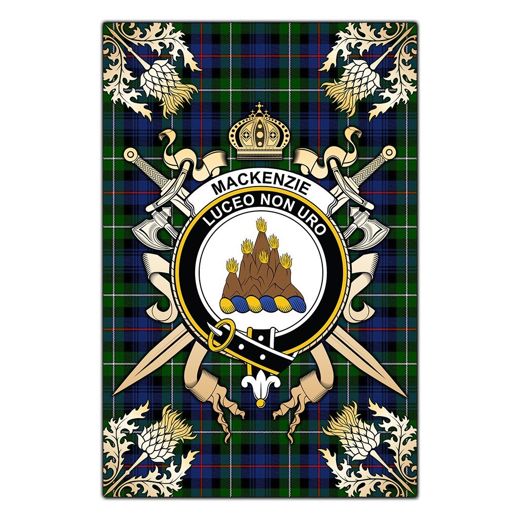 MacKenzie Modern Tartan Crest Black Garden Flag - Gold Thistle Style