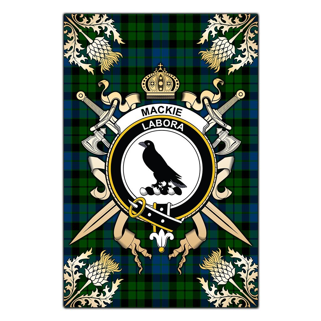 MacKie Tartan Crest Black Garden Flag - Gold Thistle Style