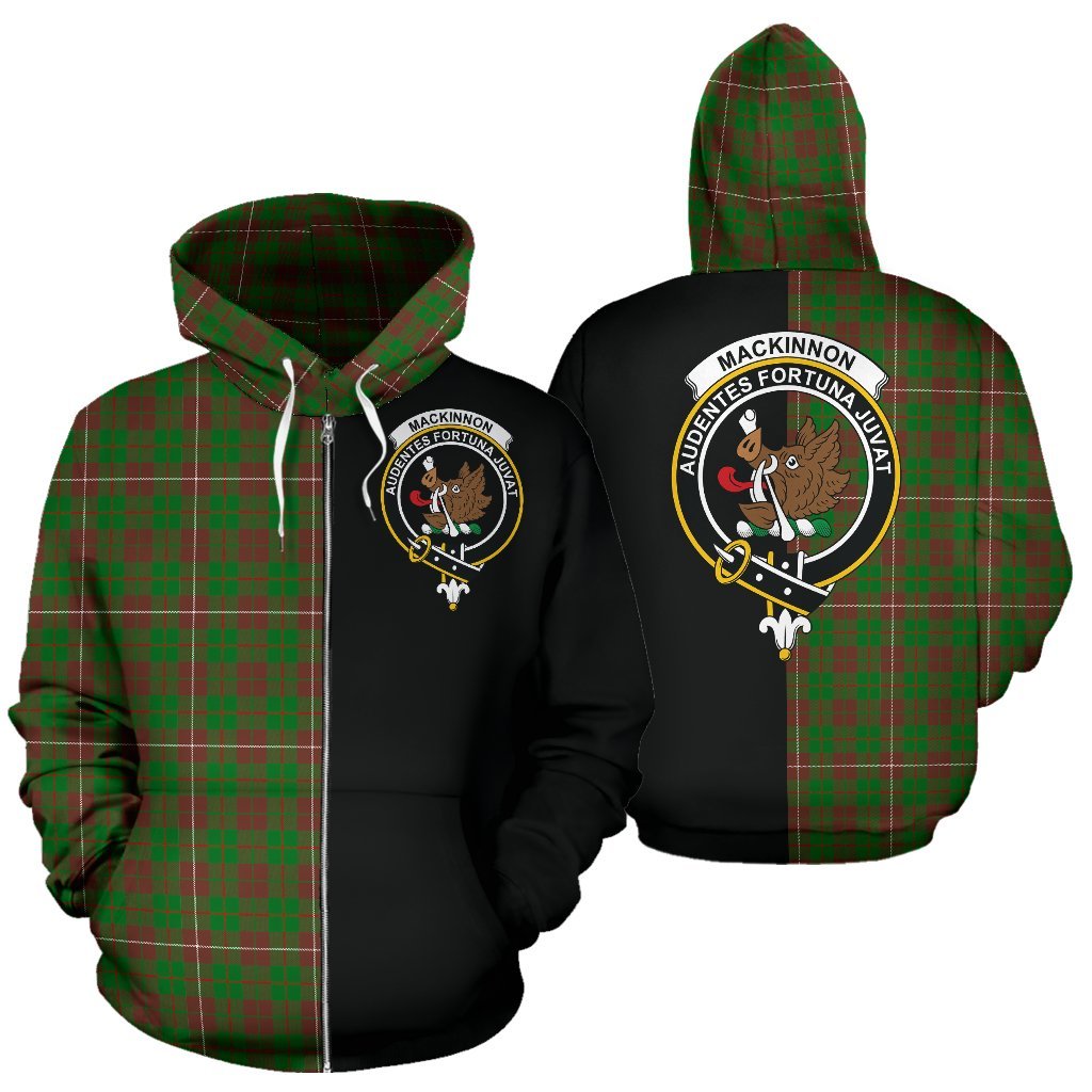 MacKinnon Hunting Modern Tartan Crest Zipper Hoodie - Half Of Me Style