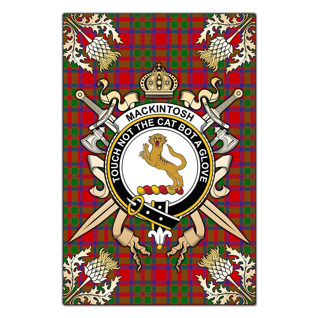 MacKintosh Modern Tartan Crest Black Garden Flag - Gold Thistle Style