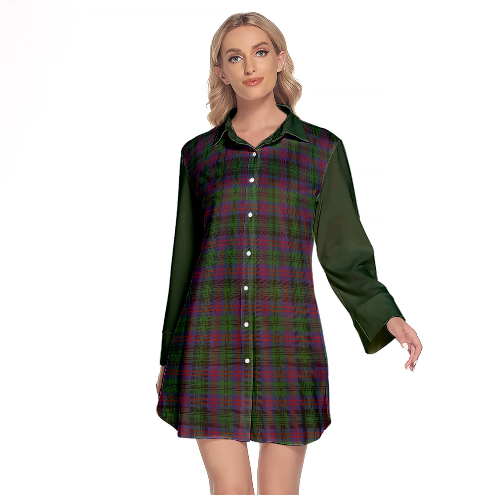 MacLachlan Hunting Tartan Women's Lapel Shirt Dress With Long Sleeve