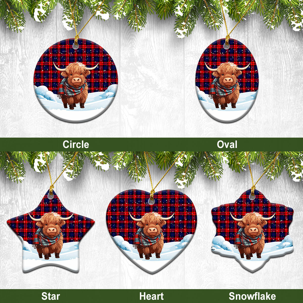 MacLachlan Modern Tartan Christmas Ceramic Ornament - Highland Cows Snow Style
