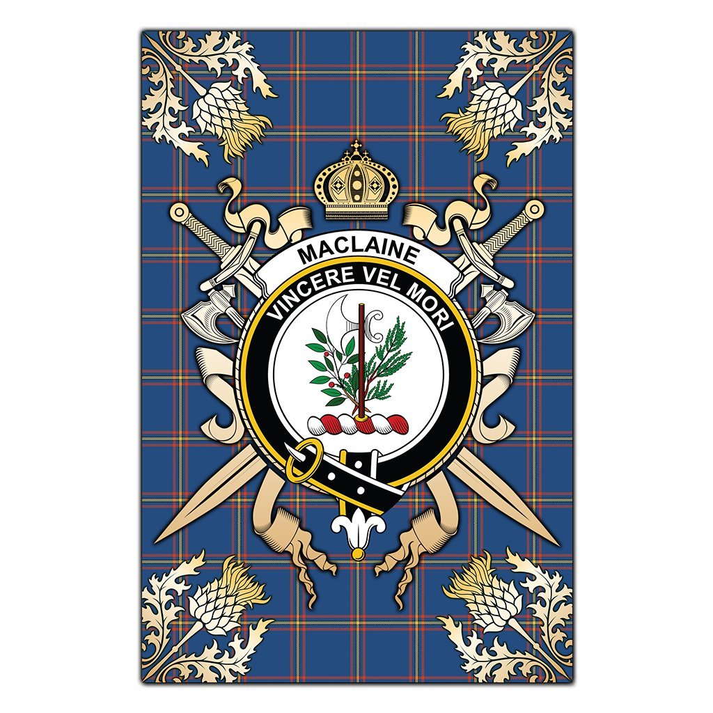 MacLaine of Loch Buie Hunting Ancient Tartan Crest Black Garden Flag - Gold Thistle Style