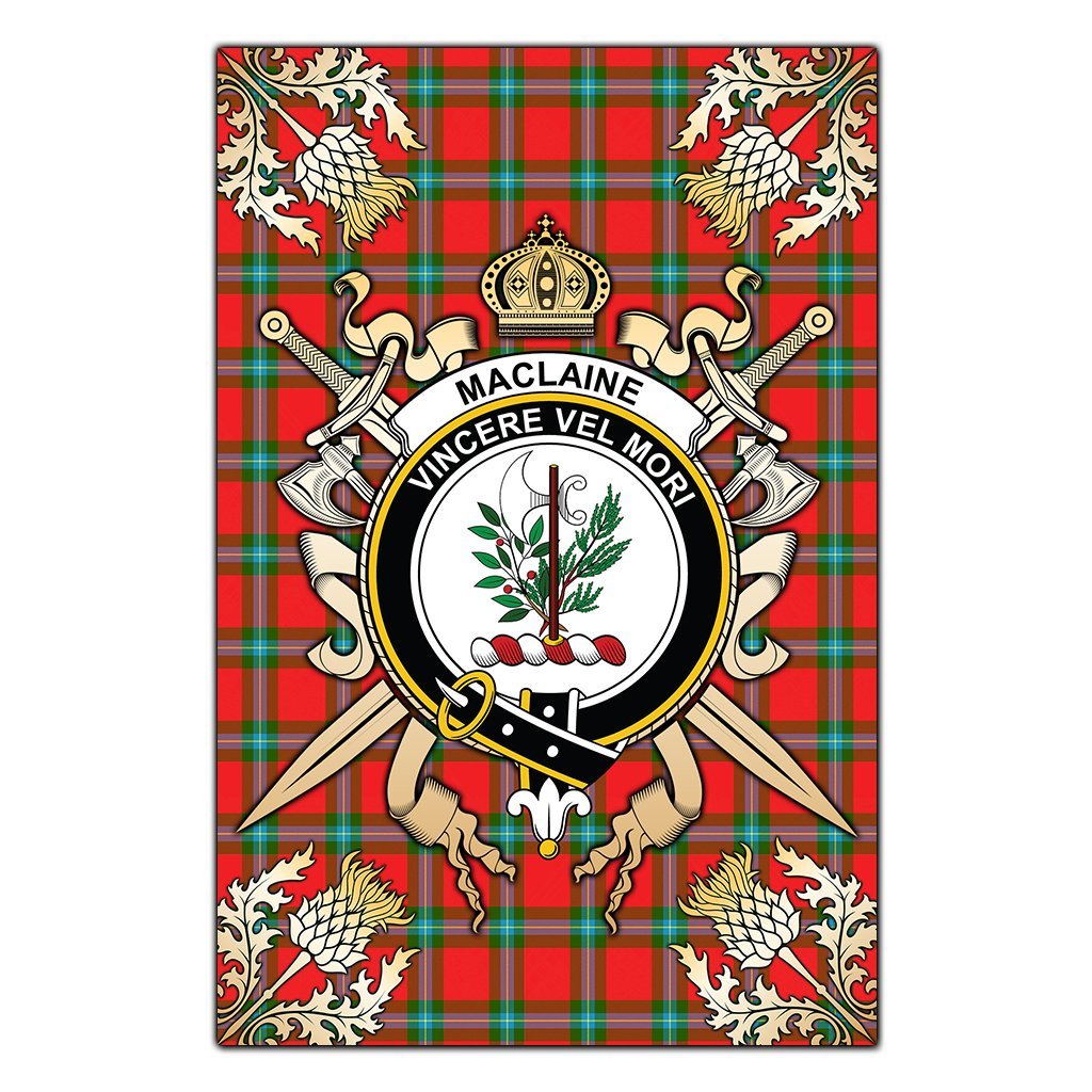 MacLaine of Loch Buie Tartan Crest Black Garden Flag - Gold Thistle Style