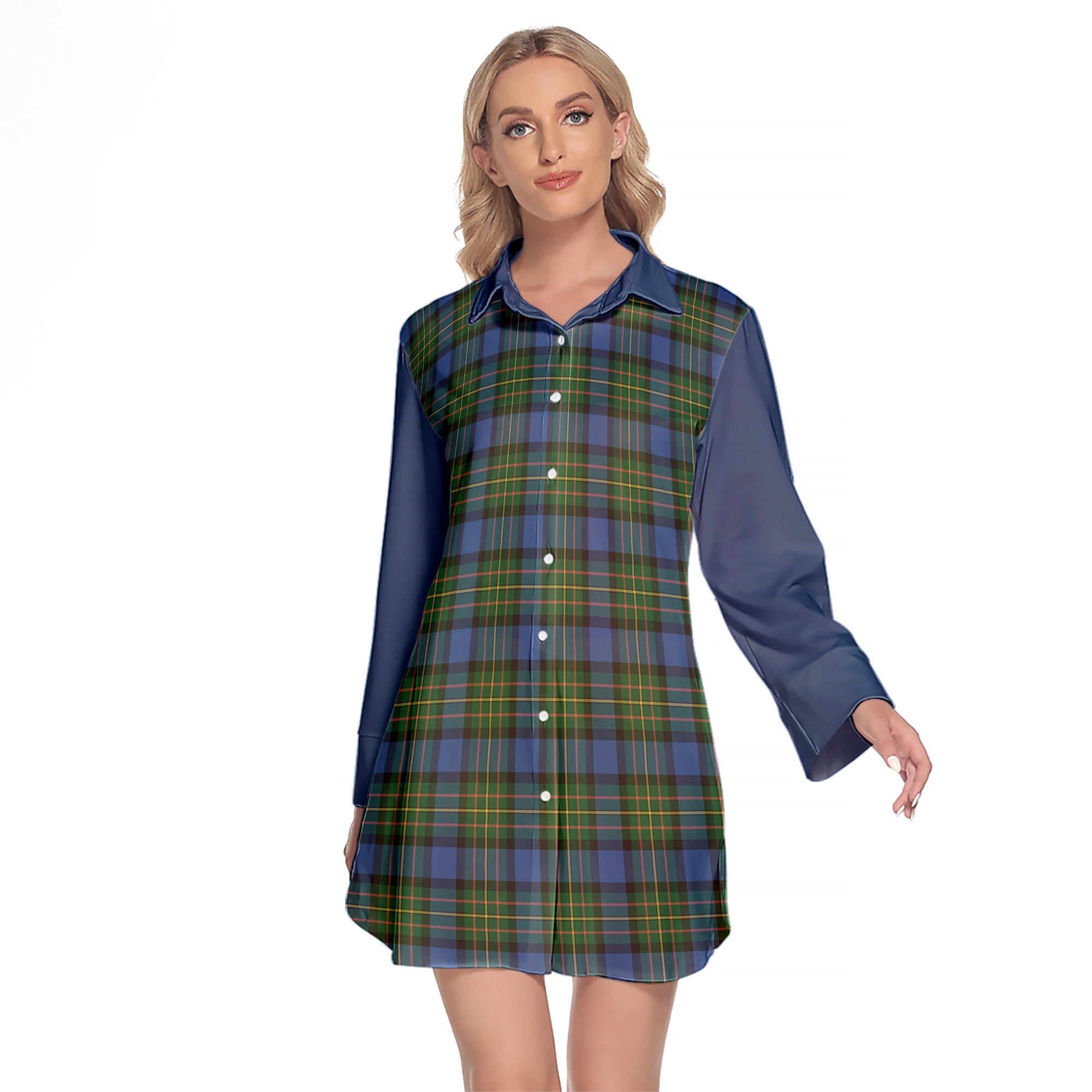 MacLaren Ancient Tartan Women's Lapel Shirt Dress With Long Sleeve