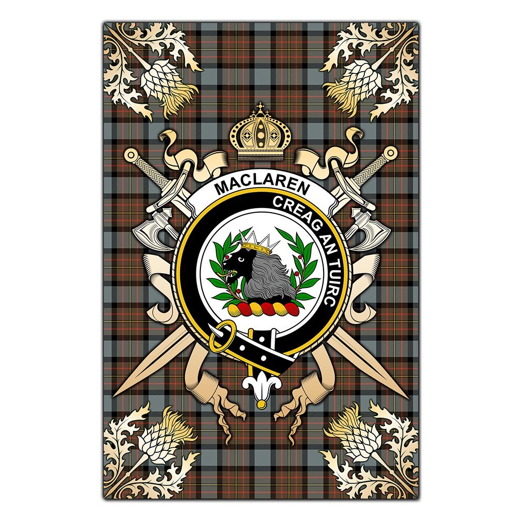 MacLaren Weathered Tartan Crest Black Garden Flag - Gold Thistle Style