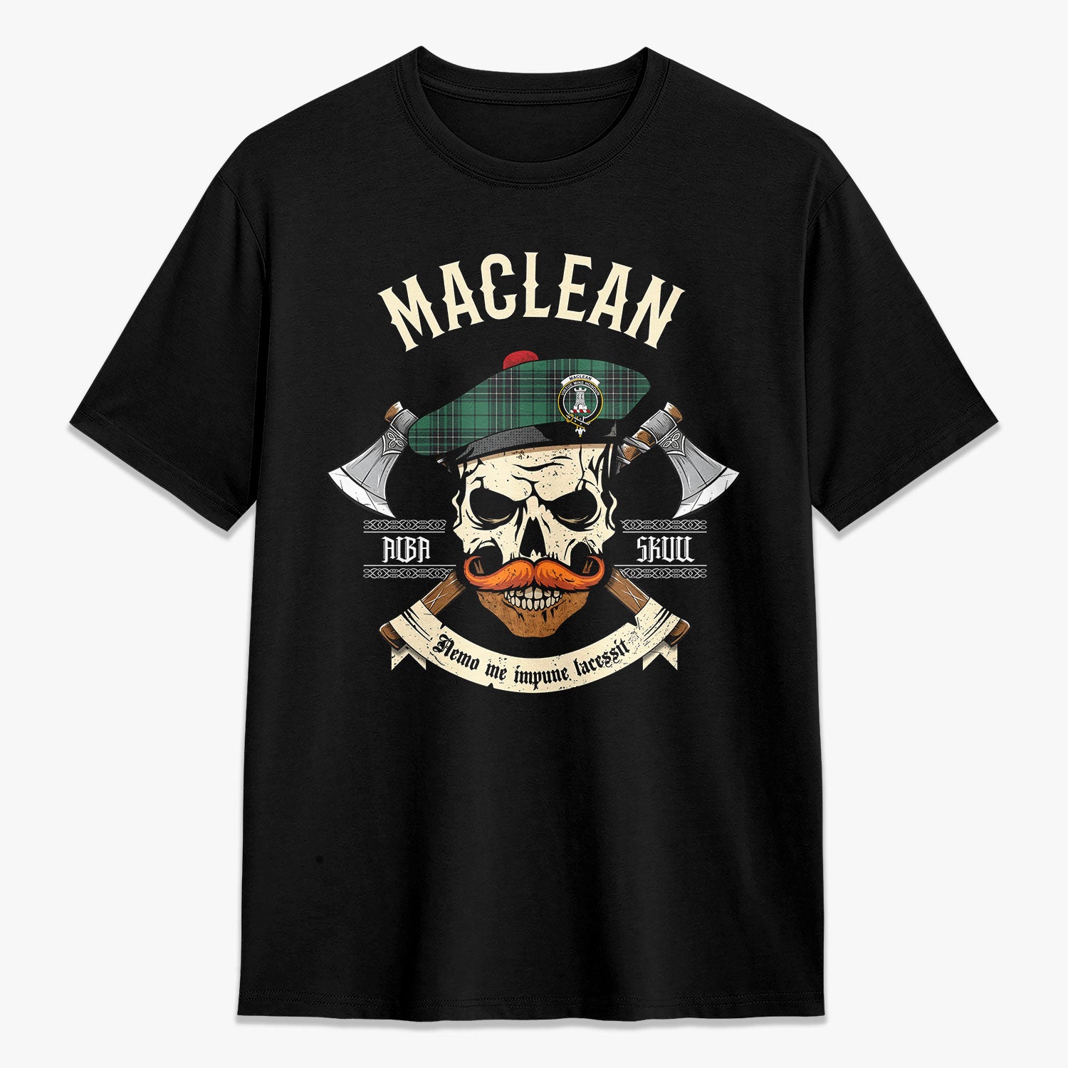 MacLean Hunting Ancient Tartan Crest 2D T-shirt - Alba Skull Style,