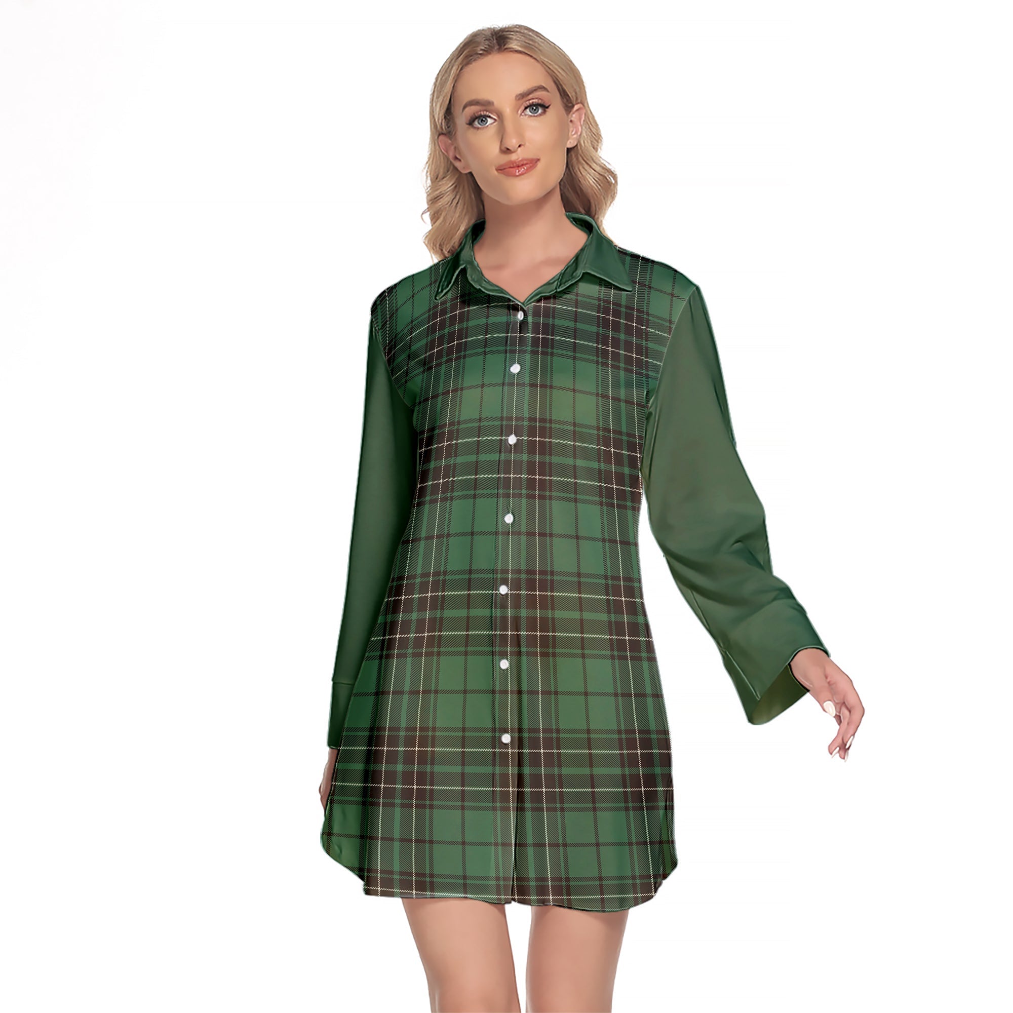 MacLean Hunting Ancient Tartan Women's Lapel Shirt Dress With Long Sleeve