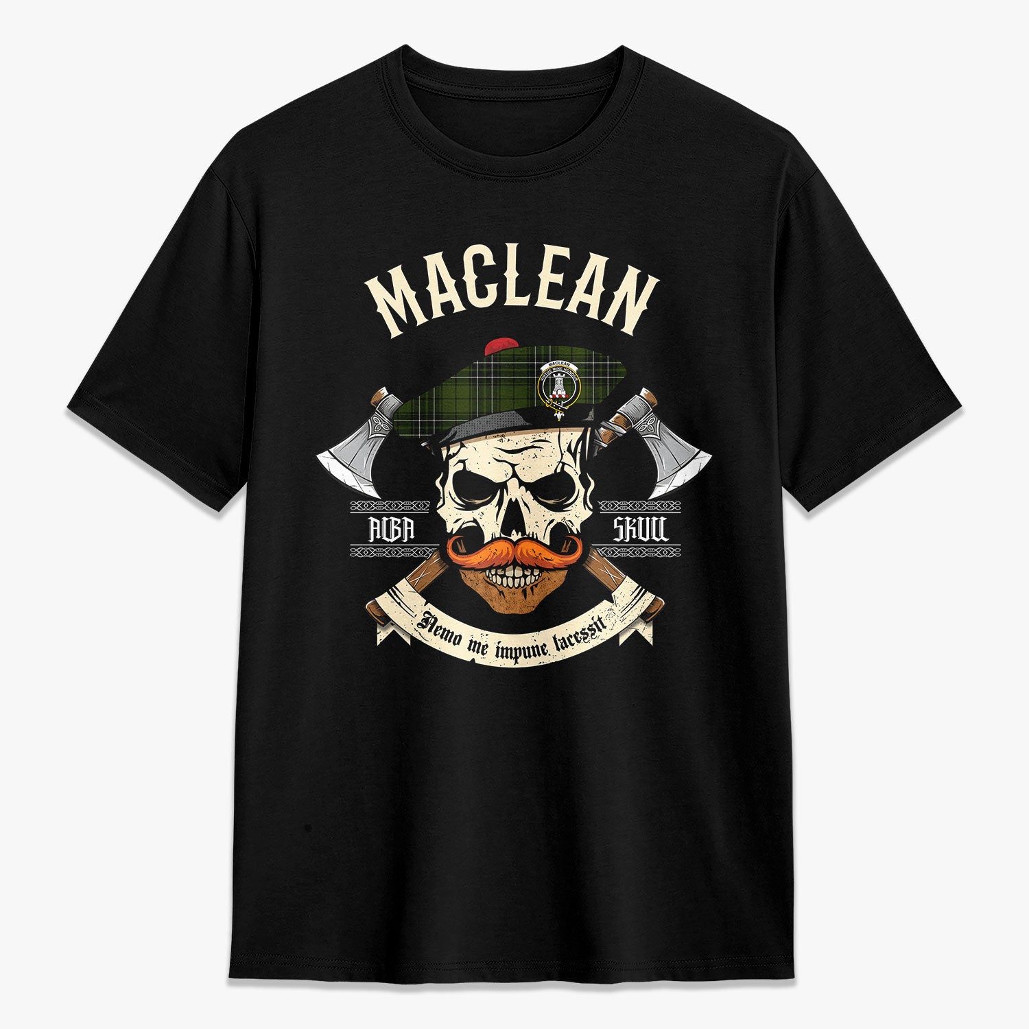 MacLean Hunting Tartan Crest 2D T-shirt - Alba Skull Style,