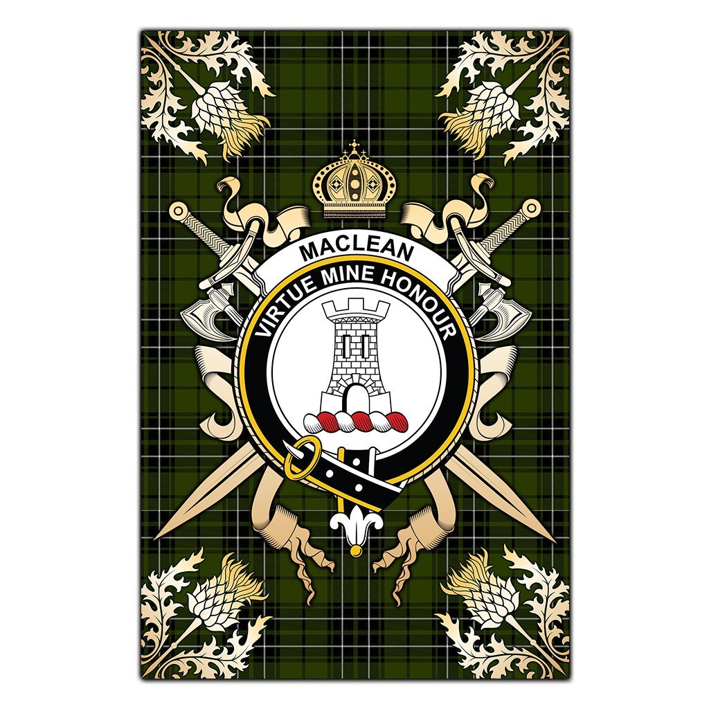 MacLean Hunting Tartan Crest Black Garden Flag - Gold Thistle Style
