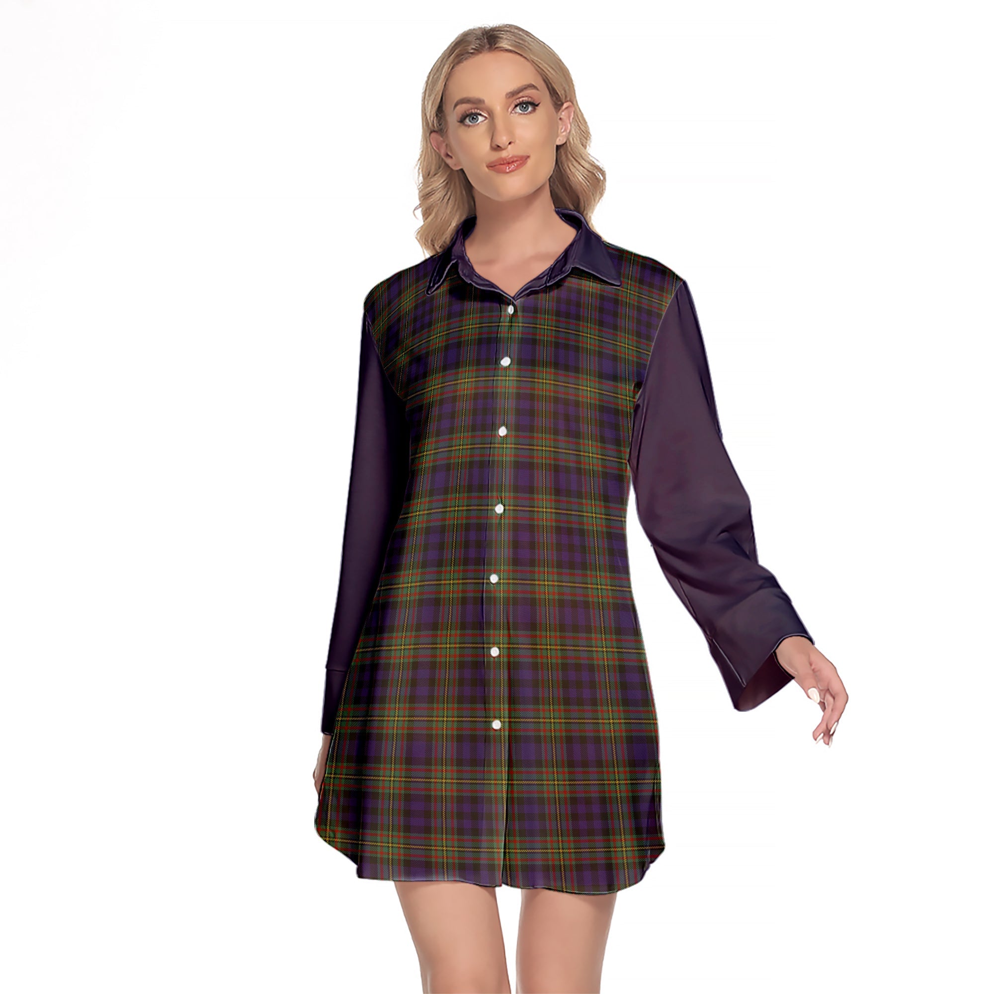 MacLellan Tartan Women's Lapel Shirt Dress With Long Sleeve