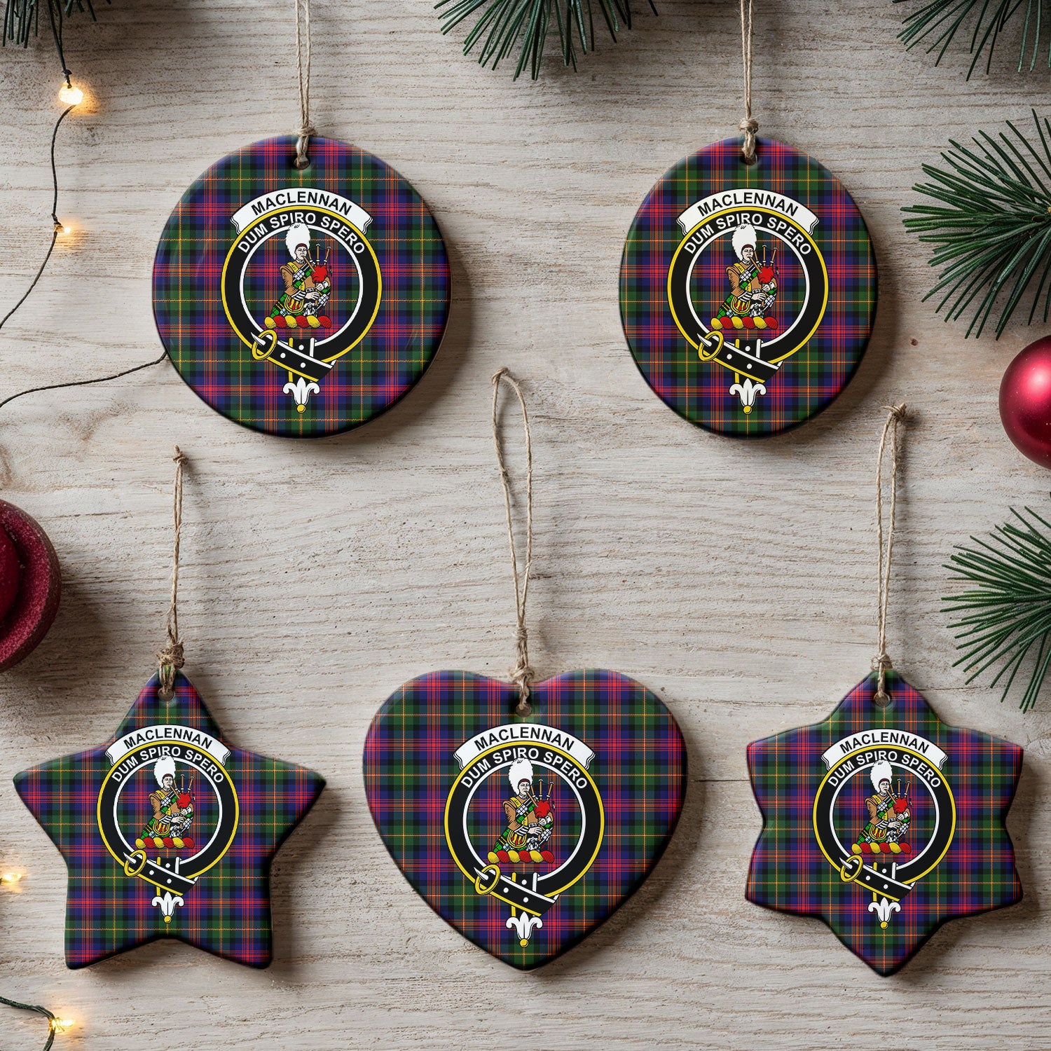MacLennan Modern Tartan Crest Christmas Ceramic Ornament