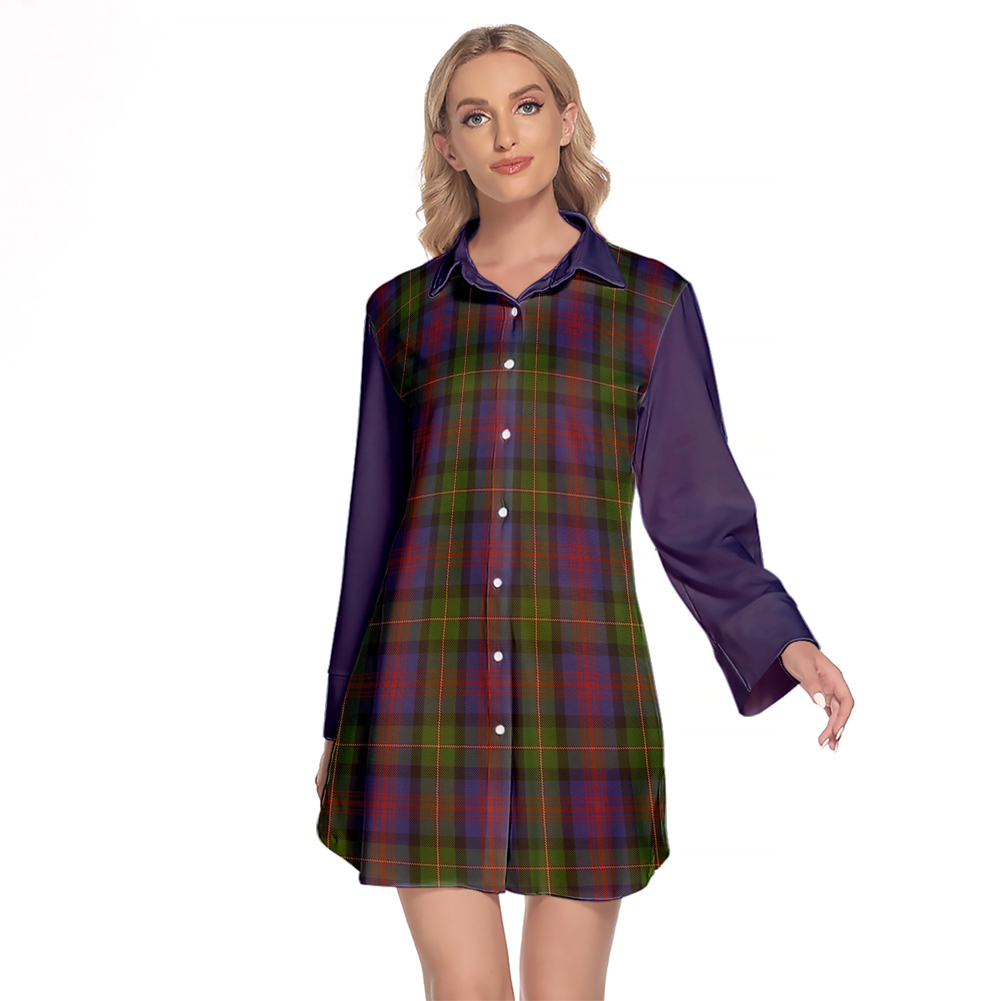 MacLennan Tartan Women's Lapel Shirt Dress With Long Sleeve