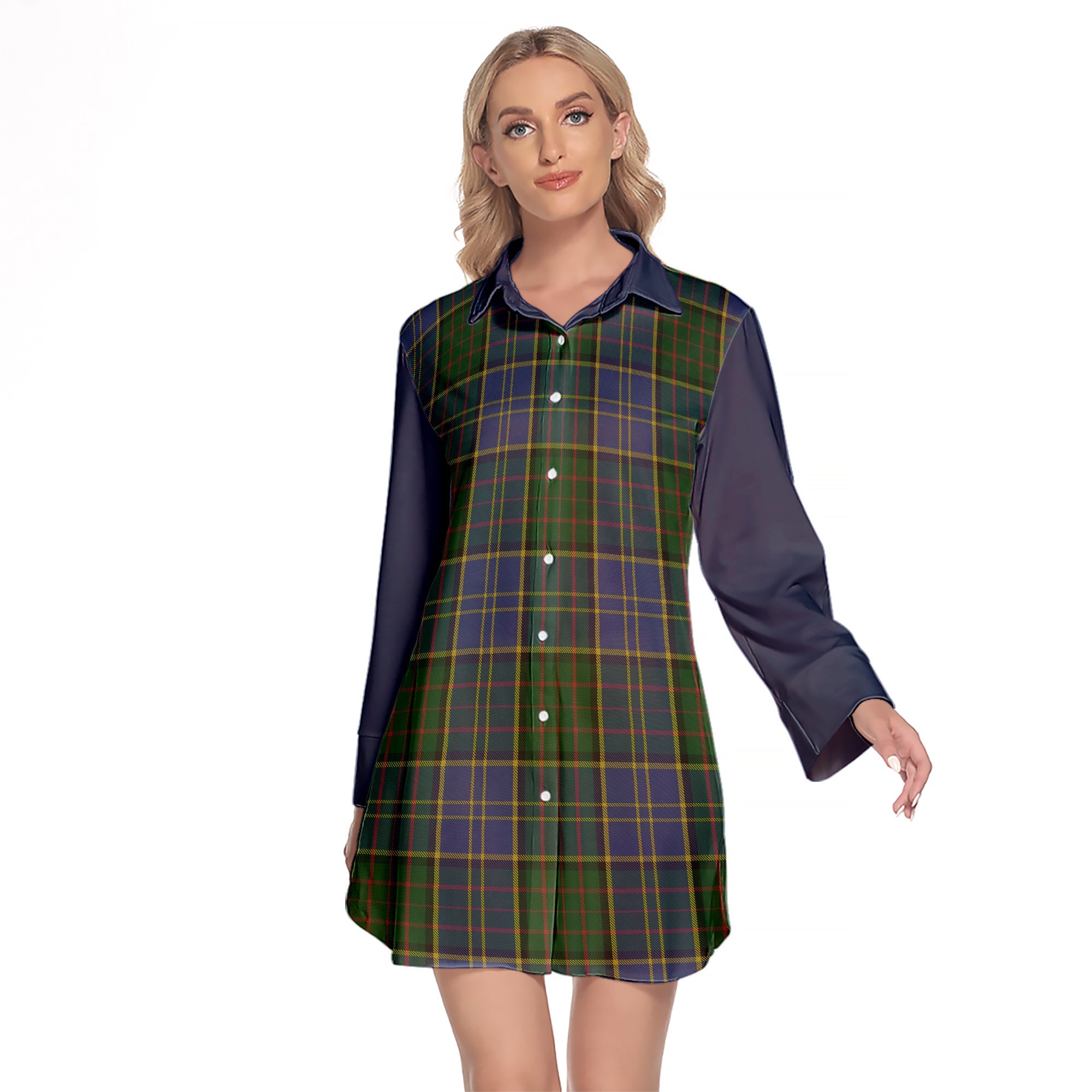 MacMillan Hunting Tartan Women's Lapel Shirt Dress With Long Sleeve