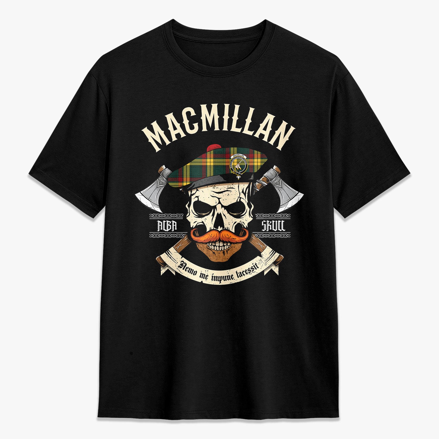 MacMillan Old Modern Tartan Crest 2D T-shirt - Alba Skull Style,