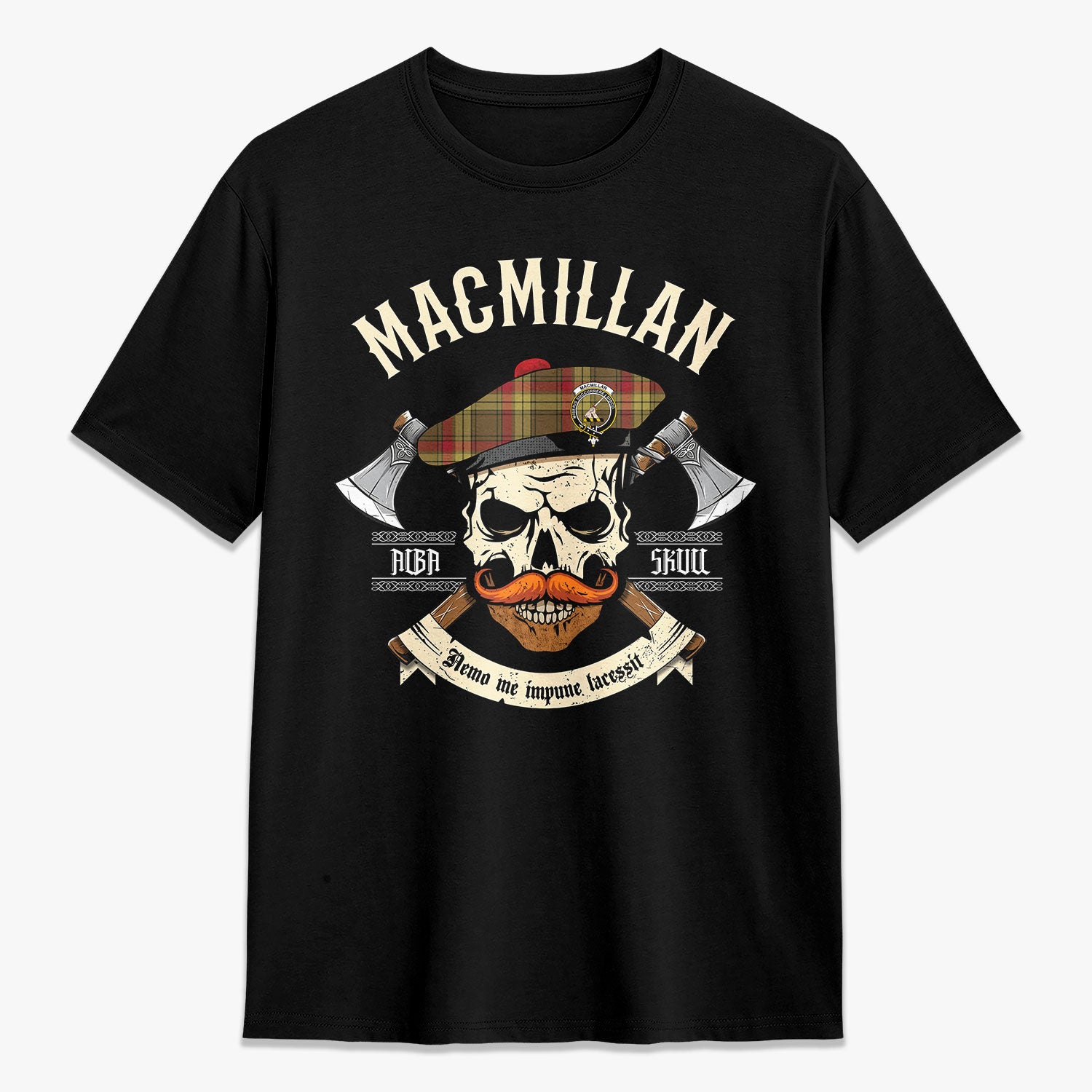 MacMillan Old Weathered Tartan Crest 2D T-shirt - Alba Skull Style,