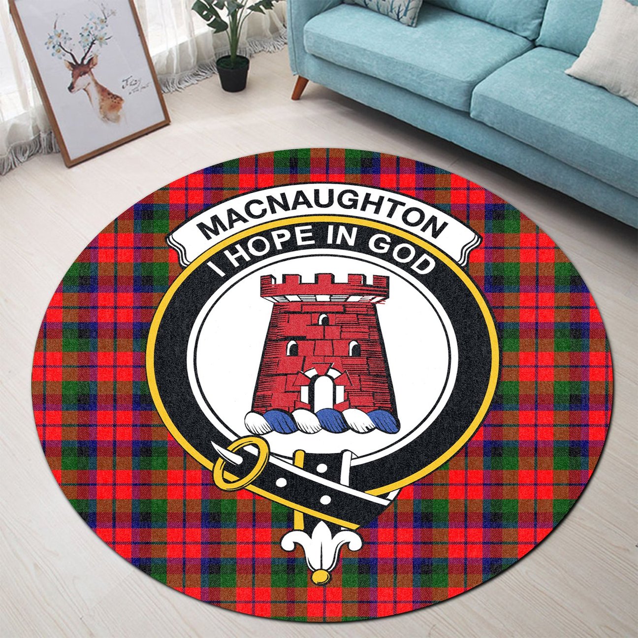 MacNaughton Modern Tartan Crest Round Rug
