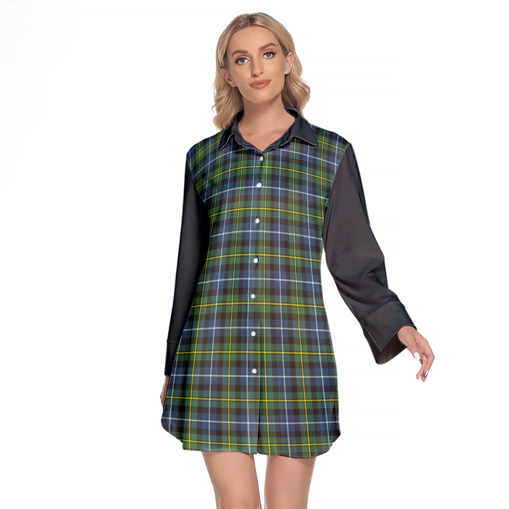 MacNeil Of Barra Ancient Tartan Women's Lapel Shirt Dress With Long Sleeve