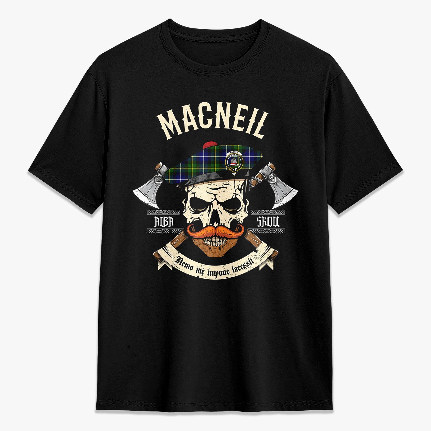 MacNeil of Barra Modern Tartan Crest 2D T-shirt - Alba Skull Style,