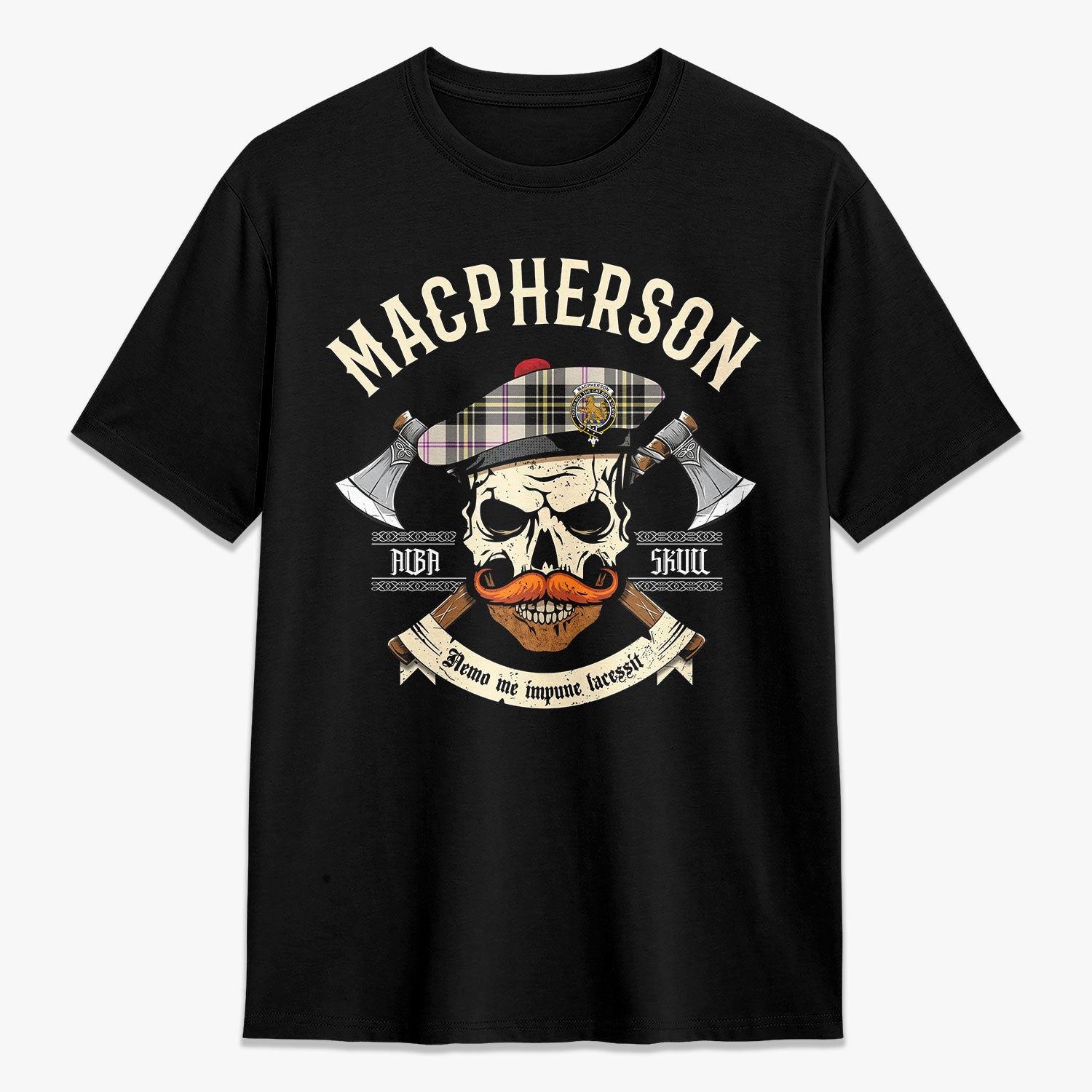 MacPherson Dress Ancient Tartan Crest 2D T-shirt - Alba Skull Style,