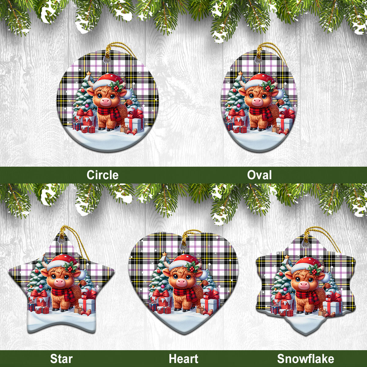 MacPherson Dress Modern Tartan Christmas Ceramic Ornament - Highland Cow Winter Style