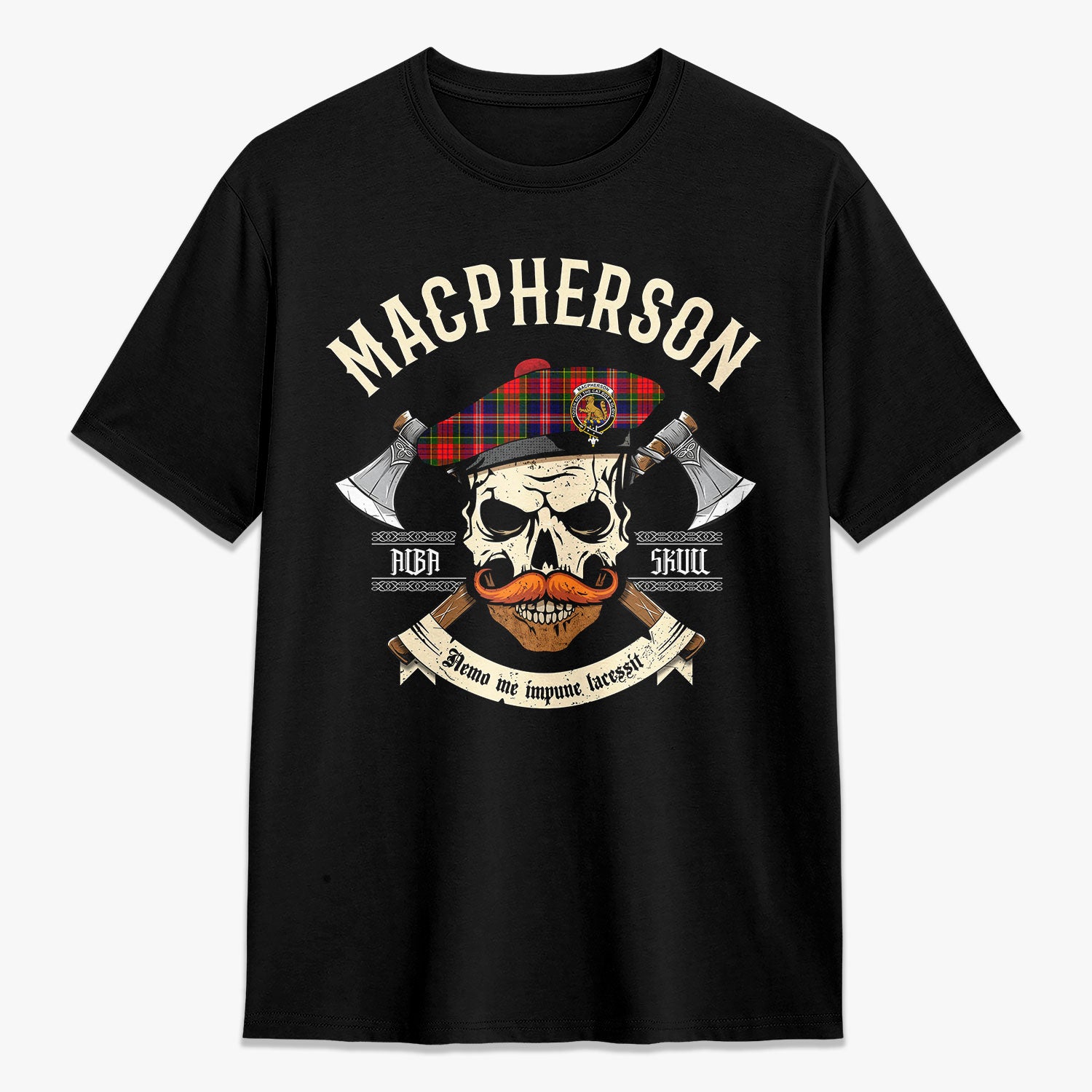 MacPherson Modern Tartan Crest 2D T-shirt - Alba Skull Style,