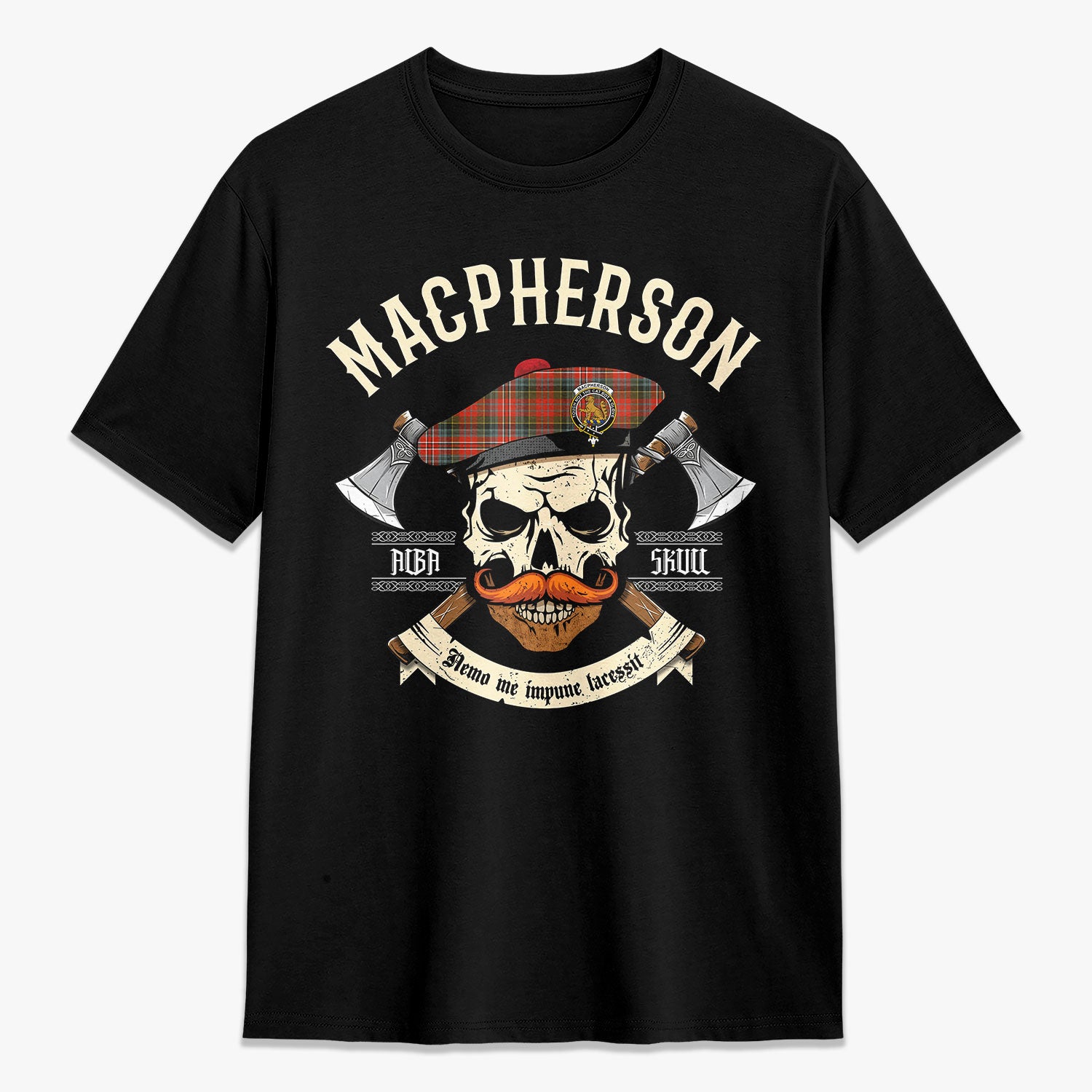 MacPherson Weathered Tartan Crest 2D T-shirt - Alba Skull Style,